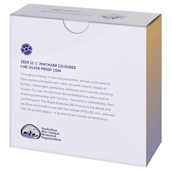 2024 $2 ‘C’ Mintmark Coloured Fine Silver Proof Coin – War Animals Remembrance