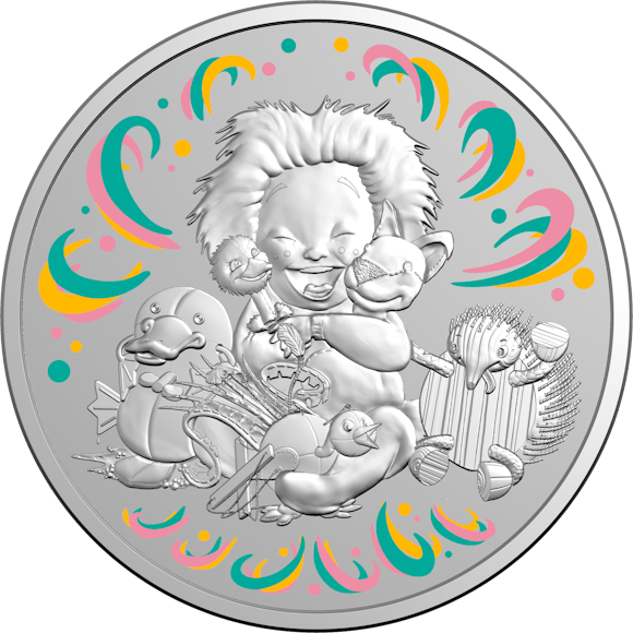 Everyone is getting into the fun and games as the Royal Australian Mint’s much loved baby coins return. The bright eyed and giggling baby is surrounded by a gang of mates including the adorable wooden echidna, the winky-wonky lyrebird, the wet windup platypus and the cute and cuddly plush emu and roo.