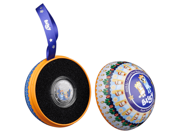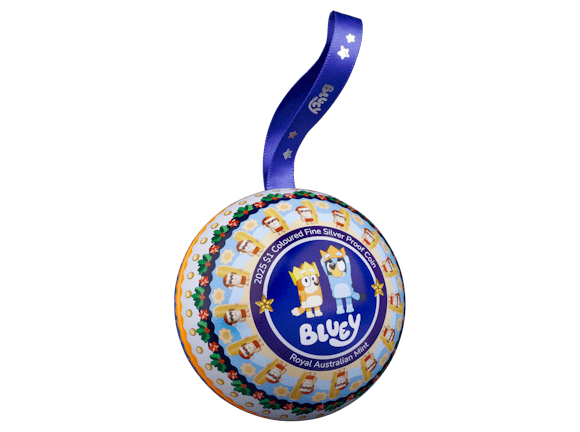 2025 $1 Silver Coloured Proof Coin – Bluey Christmas