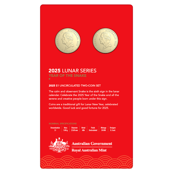 2025 $1 Uncirculated 2 Coin Set - Lunar Series - Year of the Snake