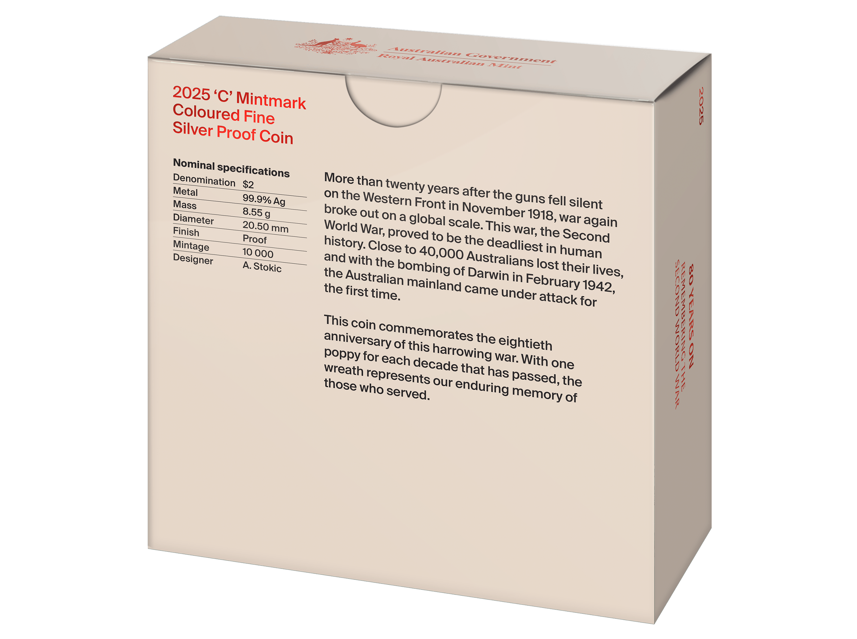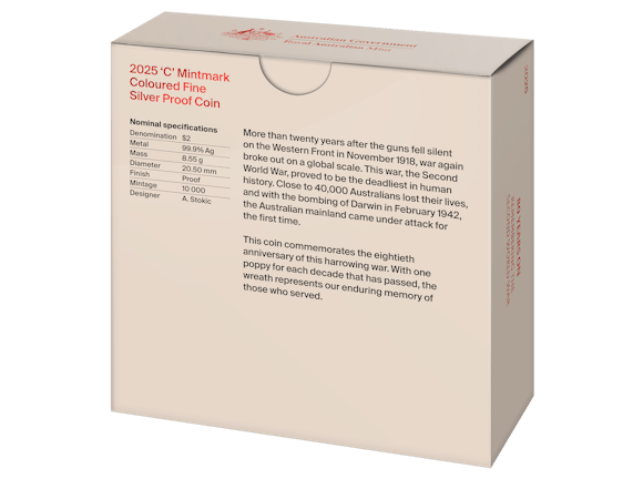 2025 $2 'C' Mintmark Coloured Fine Silver Proof Coin – 80 Years On: Remembering the Second World War