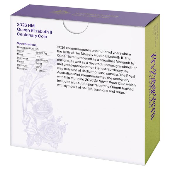 2026 $5 1 oz Silver Proof Coin - HM Queen Elizabeth II Centenary of Birth