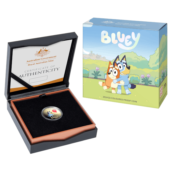 2024 $1 Coloured Proof Coin – Bluey Dollarbucks