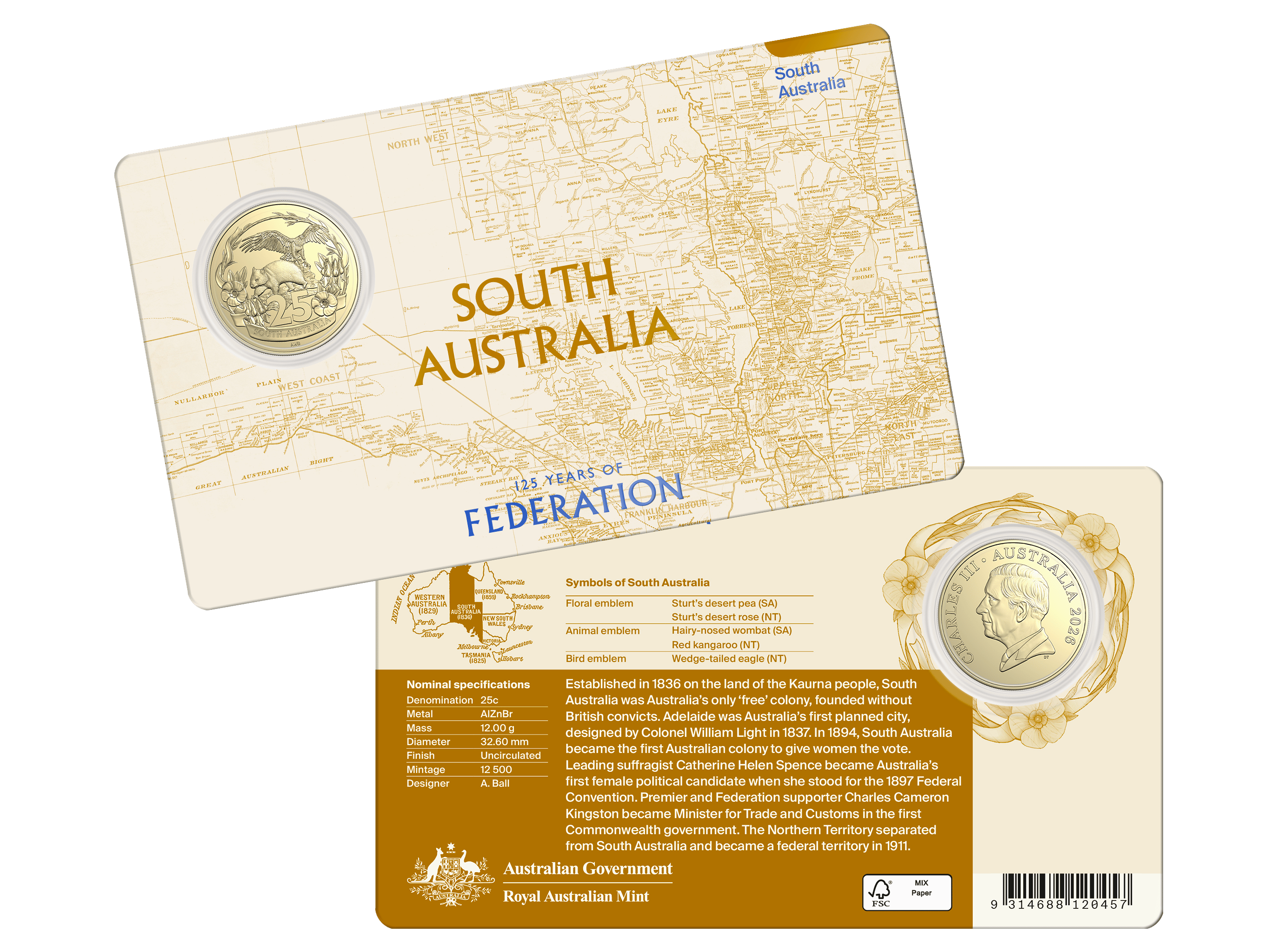 2026 25c Uncirculated Coin – 125 Years of Federation – SA